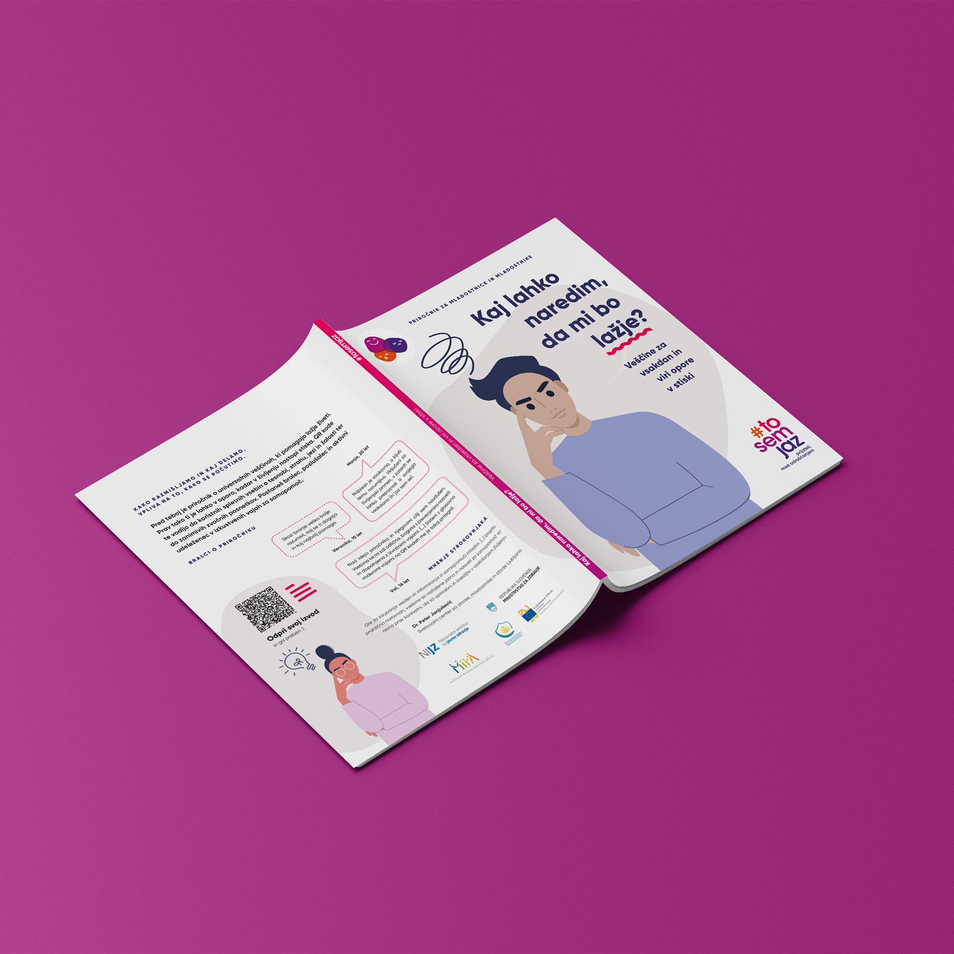 V okviru programa za duševno zdravje mladih To sem jaz smo skozi leta oblikovali več poučnih in informativnih publikacij. Priročnika za mladostnike na razumljiv in interaktiven način ponujata podporo pri prepoznavanju in obvladovanju čustvenih izzivov, spodbujata pozitivno samopodobo in krepita socialne veščine. Priročnik za učitelje in strokovne delavce pa je dragocena pomoč pri preventivnem delu z mladimi.