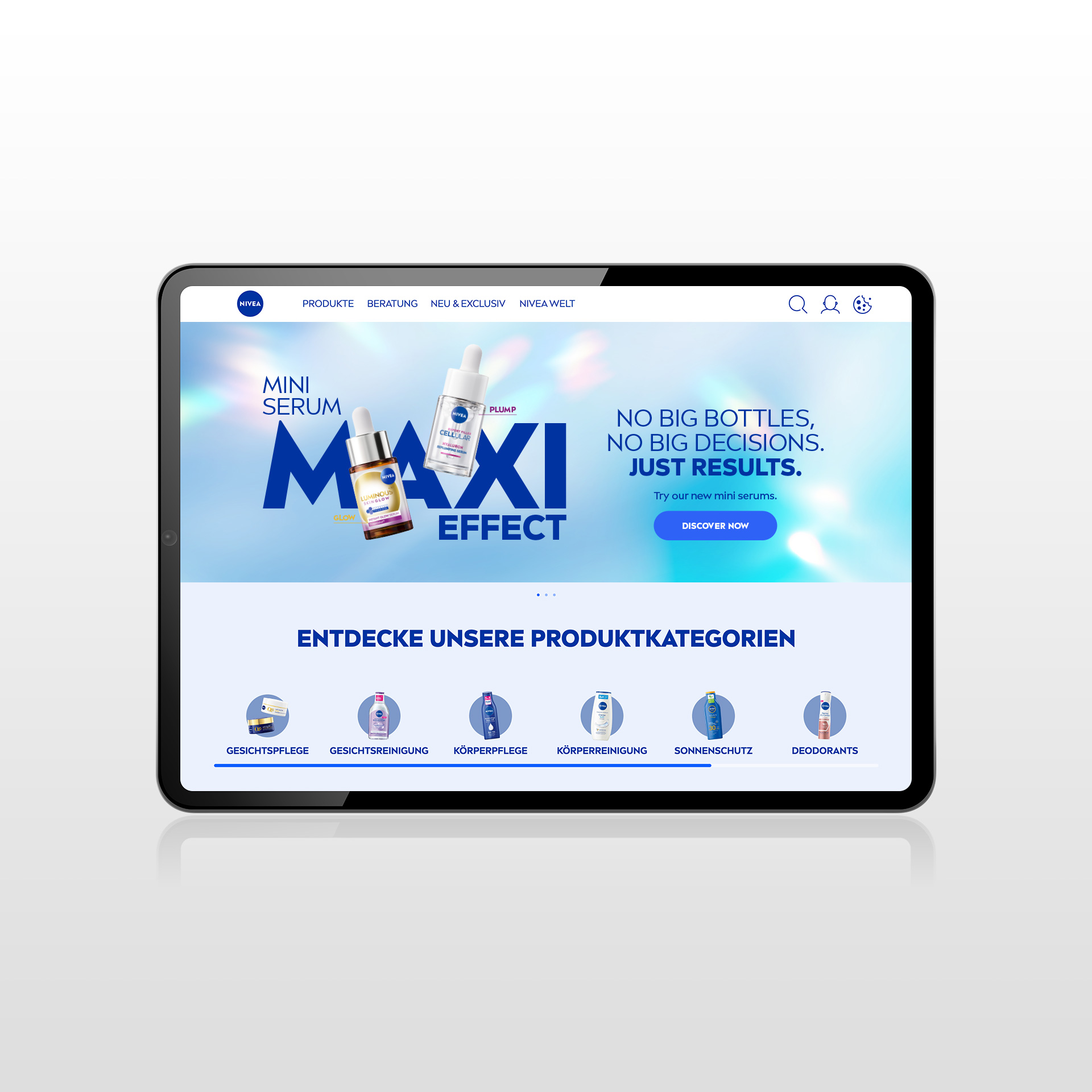 Kozmetična industrija v zadnjih letih doživlja premik – potrošniki si želijo preizkusiti izdelke brez tveganja, v praktičnih embalažah, ki jih lahko vzamejo s seboj kamor koli. Tudi NIVEA je ta trend prepoznala in razvila mini različici svojih priljubljenih serumov. Naša naloga? Zasnovati idejno, oblikovno in izvedbeno celovito kampanjo za več evropskih trgov.